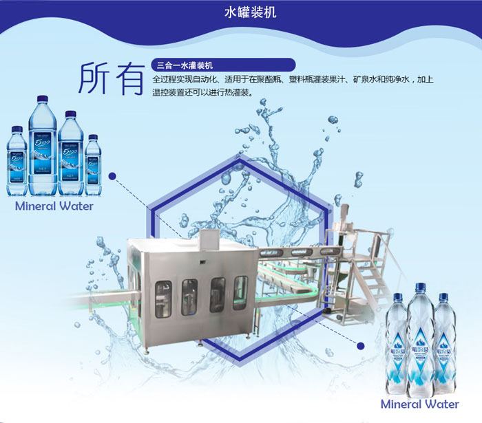飲用水灌裝機(jī)集沖洗、灌裝、旋蓋于一體,全過(guò)程自動(dòng)化運(yùn)行,主要適用礦泉水、純凈水等不含氣飲料的沖瓶、灌裝、封口連續(xù)作業(yè)。本機(jī)大部分電器系統(tǒng)零件均采用國(guó)外優(yōu)良產(chǎn)品,所有與液料接觸的地方均采用優(yōu)質(zhì)的不銹鋼材料制作,主關(guān)鍵部件采用數(shù)控機(jī)床精密加工, 整機(jī)光電檢測(cè)各部件的運(yùn)行狀況,無(wú)瓶不灌裝,無(wú)瓶不送蓋,自動(dòng)化程度高,操作簡(jiǎn)易,具有耐磨、穩(wěn)定、故障率低等特點(diǎn),產(chǎn)品質(zhì)量處于行業(yè)前列,是新老飲料投資者的較佳選擇。