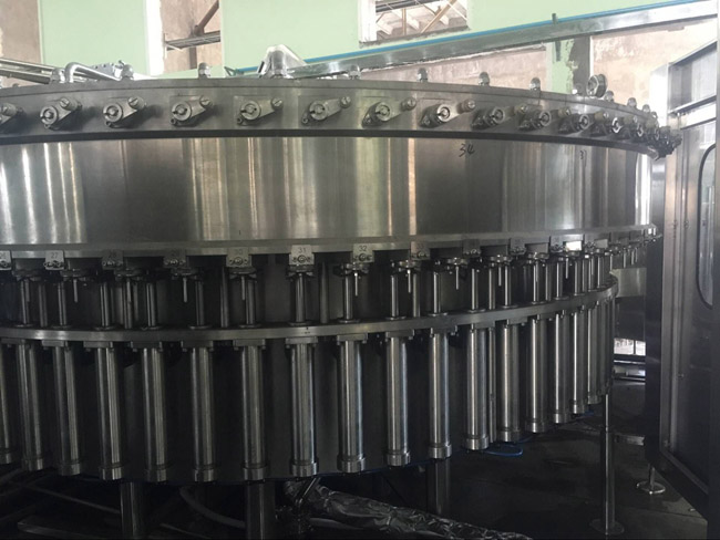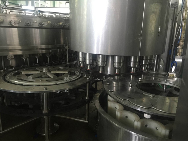 飲用水灌裝機(jī)集沖洗、灌裝、旋蓋于一體,全過程自動(dòng)化運(yùn)行,主要適用礦泉水、純凈水等不含氣飲料的沖瓶、灌裝、封口連續(xù)作業(yè)。本機(jī)大部分電器系統(tǒng)零件均采用國(guó)外優(yōu)良產(chǎn)品,所有與液料接觸的地方均采用優(yōu)質(zhì)的不銹鋼材料制作,主關(guān)鍵部件采用數(shù)控機(jī)床精密加工, 整機(jī)光電檢測(cè)各部件的運(yùn)行狀況,無瓶不灌裝,無瓶不送蓋,自動(dòng)化程度高,操作簡(jiǎn)易,具有耐磨、穩(wěn)定、故障率低等特點(diǎn),產(chǎn)品質(zhì)量處于行業(yè)前列,是新老飲料投資者的選擇。